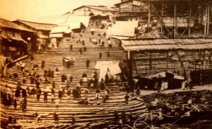 望龙门位置处于西街三街坊,东临长江处,清末初期望龙门的龙门码头是重庆最大的生禽交易码头,大量的牛羊等牲畜在此进行宰杀,牲畜宰杀后肉类进行贩卖,牛羊牲畜的下水(俗称内脏)无人贩卖被弃,被当地的纤夫挑夫捡来三五成群做成了麻辣烫。随着时间的推移,久而久之麻辣烫演变成了火锅,便被重庆人搬进了殿堂,故此雾龙门街坊火锅在望龙门龙门码头也应运而生!