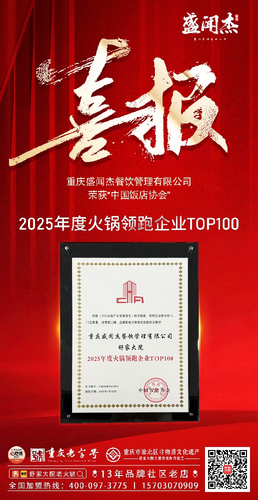 恭喜盛闻杰荣获:2025年度火锅领跑企业TOP100